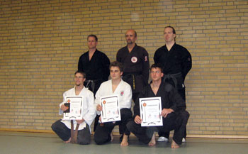 in Büderich bestanden. Aus dem Kempo Prüfungsprogramm mussten Ippon Kumiten, Kempo Kumiten, Schülerformen, Meisterformen, Blockformen und selbstverständlich Selbstverteidigungstechniken vorgeführt werden.