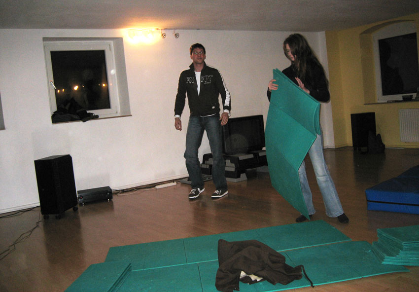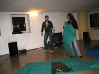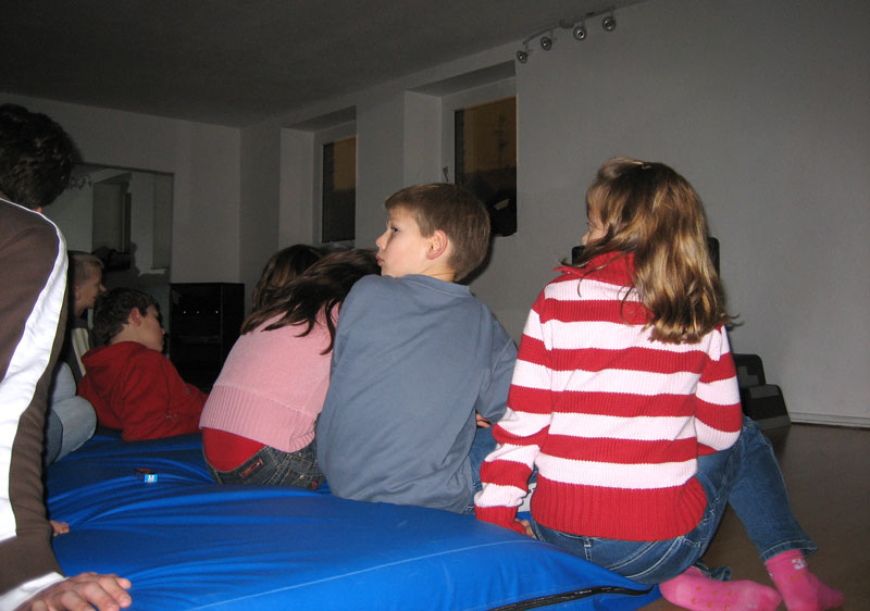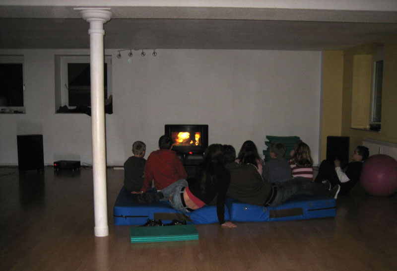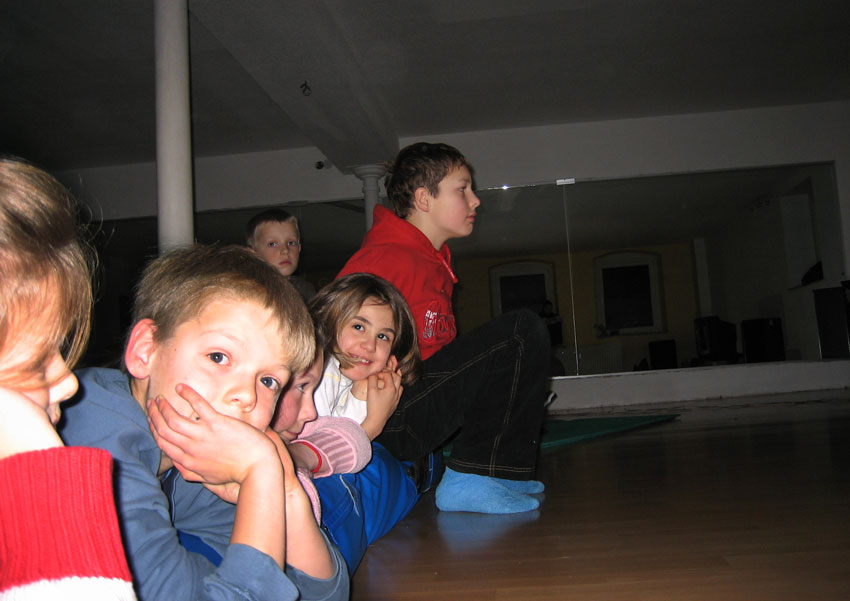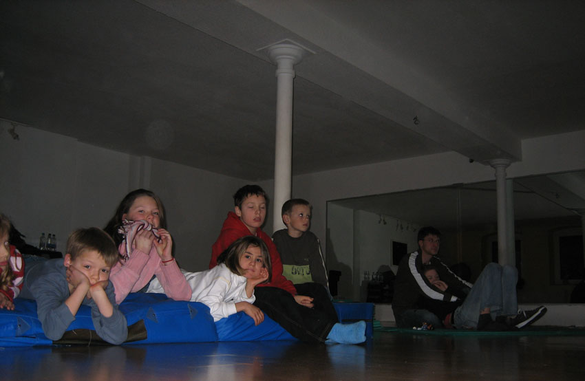 Am 28.12.2006 haben Manuel & Alexander in der Sportschule in Rheinberg einen Videoabend mit der Kindergruppe zum Ausklang am letzten Trainingstag im Jahre 2006 organisiert. Ein kleiner Fernseher sorgte für überschaubare Gemütlichkeit. Der Spaß kam wie immer nicht zu kurz, wurde doch der Trainingsraum kurzerhand zum Kino auf der einen Seite, auf der anderen zum spielerischen Geplänkel zwischen den Trainern und allen anwesenden Kindern umfunktioniert. Verletzt wurde dabei selbstverständlich niemand... Ehrlich! Für Knabbereien und den nötigen "Einstiegshumor" wurde ebenfalls gesorgt, wobei letzteres wie von selbst sich sehr schnell verbreitete.